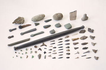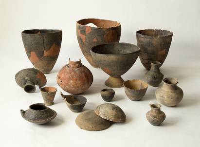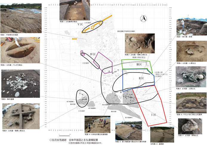 遺物では土器約12トン、石器約20万点など極めて多くの遺物が出土しています。その中でも人面付浅鉢形土器、縄文人骨(7体分)のほか、骨角器や動物の骨も豊富に出土しています。