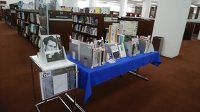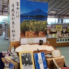 一般室、こども室、移動図書館車「いずみ号」ともに太宰治資料展を開催してくださっています。ありがとうございます!