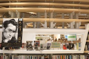 平成30年7月にオープンしたばかりの、県立図書館と市民図書館本館が一緒になっている図書館です。来館者が100万人を超えたそうです!たくさんの方に太宰治作品を手に取っていただけたと思うと本当にうれしいです。