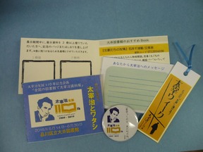 コーナーの資料を借りた方に太宰バッジプレゼントとのことですよ。