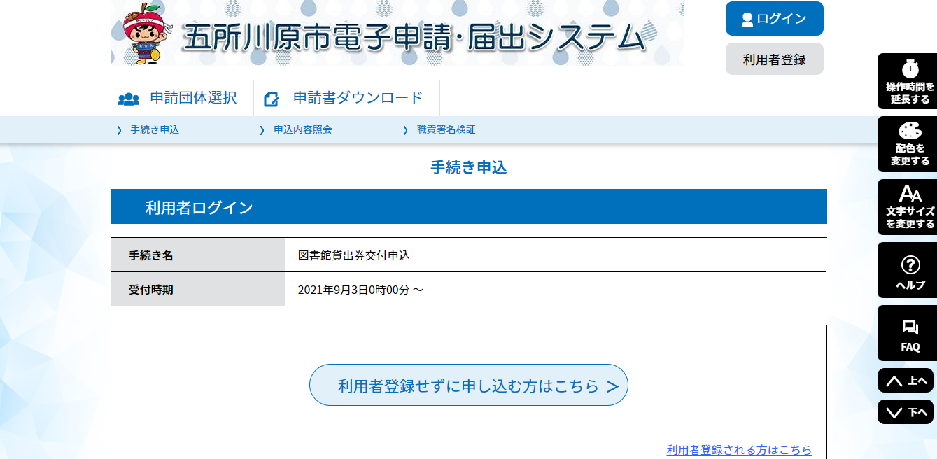 貸出券交付申込(新規・再交付)を電子申請で行う手順