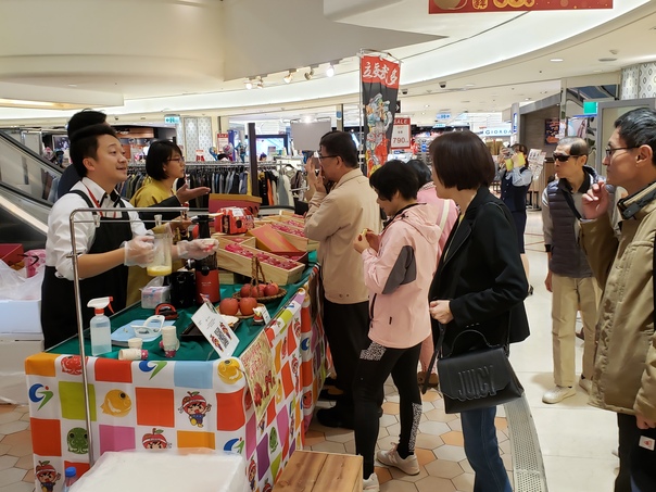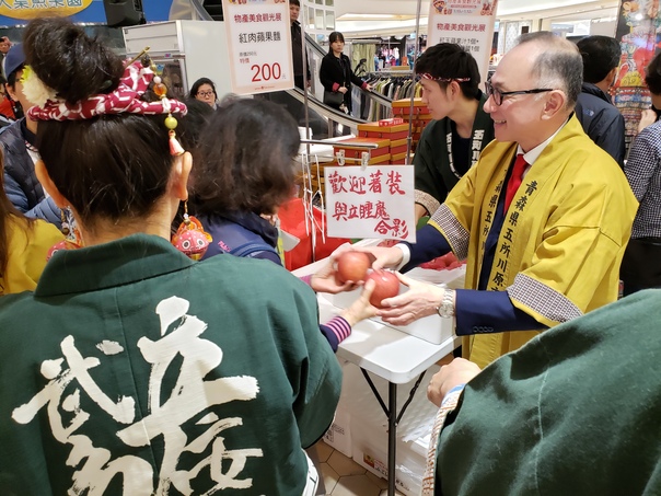 当市では、1月10日から12日までの3日間、台湾台北市の百貨店「大葉高島屋」において、海外で初となる物産展「青森県まるごと五所川原フェア」を開催し、市職員や昨年11月に設立された「五所川原市台湾交流協会」の会員、五所川原農林高等学校の生徒の皆さんなどが、それぞれ自慢の商品をPR、販売しました。