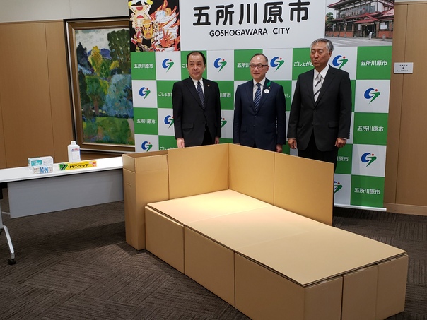 5月20日、有限会社羽藤商事、森羽紙業株式会社と災害時に避難所で使用できる段ボール製品や様々な日用品等の供給について、協定を締結しました。