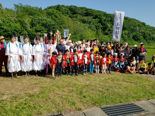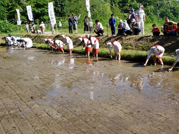 お田植祭は、田植えを楽しくする方法として、田植歌を歌いながら作業をするという風習が、田の神を祀(まつ)って豊穣を願う農耕儀礼と結びついて祭礼となったと言われています。