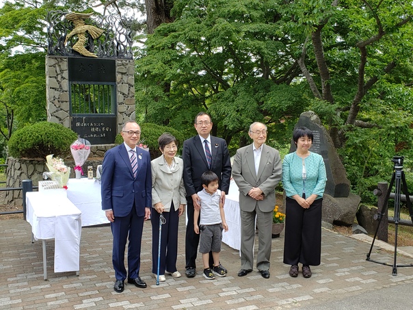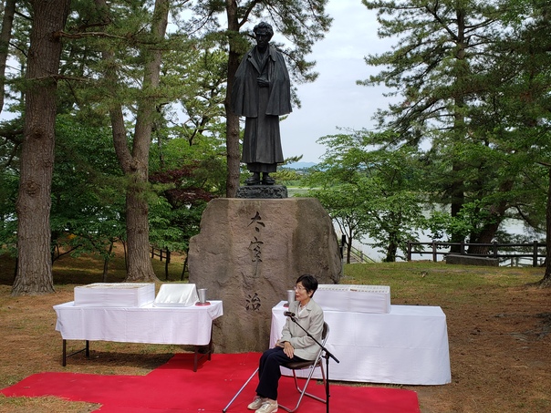 6月19日、当市金木町が誇る文豪・太宰治の生誕110年を迎え、芦野公園太宰治銅像前において、津島園子様はじめ津島家ご親族、県内外からお出での太宰ファン、そして地域の皆様と一緒に、この大きな節目をお祝いしました。