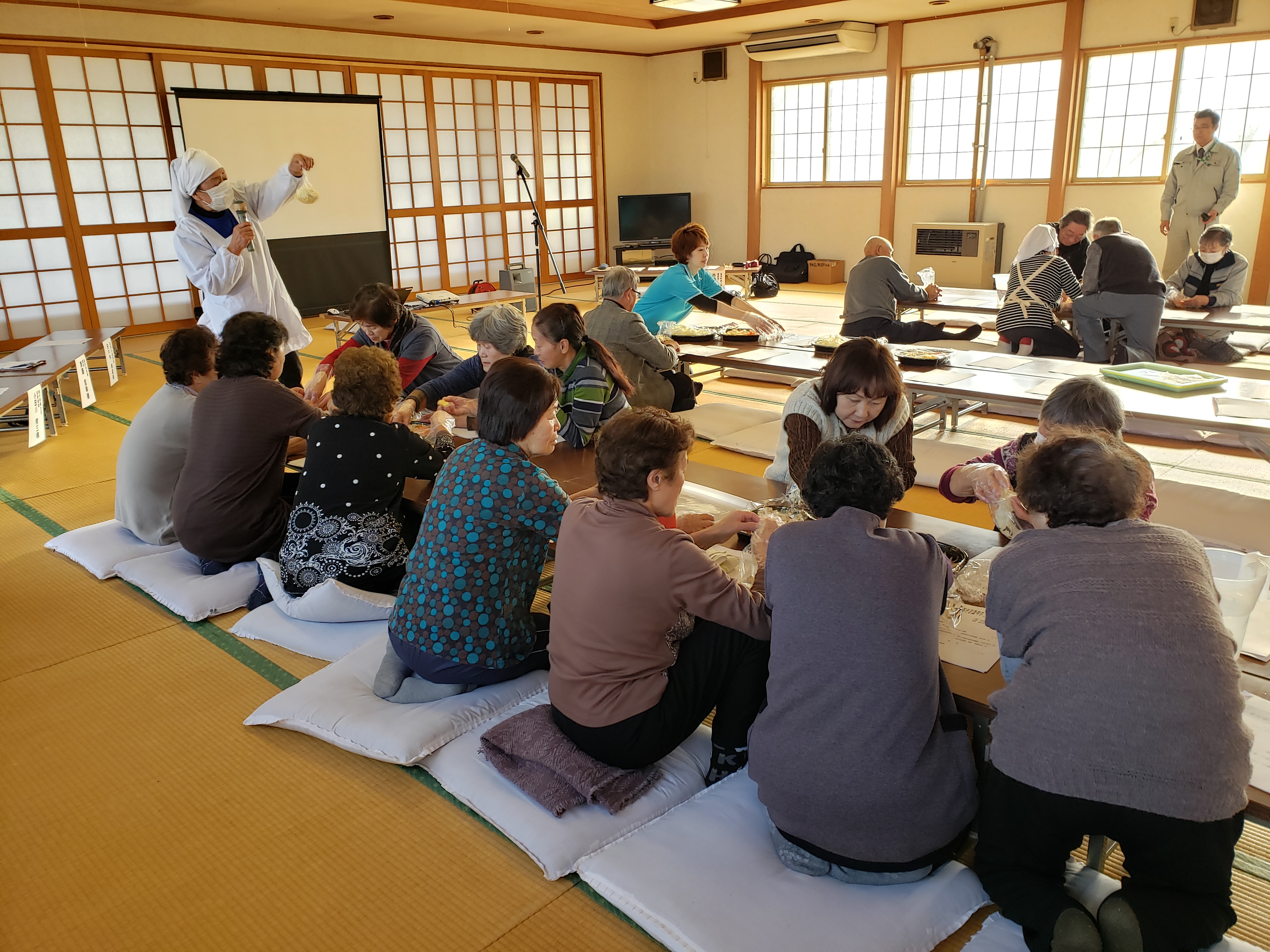 私は12月17日に喜良市コミュニティセンターで行われた、ビニール袋での炊き出し訓練と防災・減災についての勉強会に参加しました。