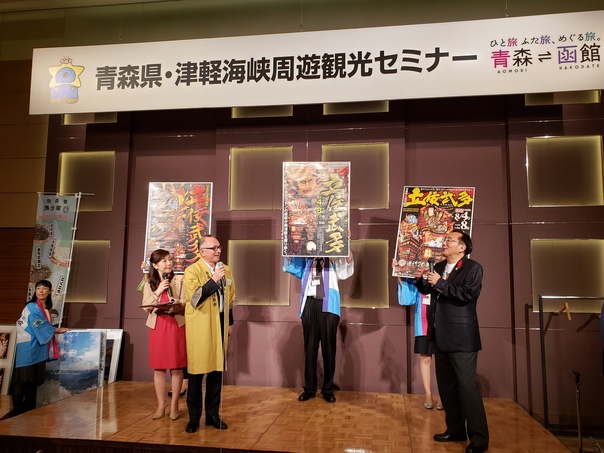 10月8日、青森県と北海道南の旅の魅力をセールスする「青森県・津軽海峡周遊観光セミナー」が東京都において開催され、青森県知事や各自治体の首長などが観光関係事業者などに対し、祭りや食をはじめとした多くの見所についてPRしました。